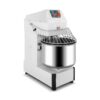 Amasadora espiral recomendable para sectores de alto rendimiento. Ideal para la preparación de grandes masas de gran consistencia. Provista de rejillas de protección en acero inoxidable y de todos los elementos eléctricos de seguridad. Chasis construido con chapa entre 5 y 8 mm de grosor. Acabado exterior en pintura epoxi de color blanco. Caldero, gancho espiral, divisor de la masa, rejilla de seguridad y demás elementos que entran en contacto con la masa fabricados enteramente en acero inoxidable. Mandos a 24 V y con botón de parada de emergencia. Equipos dotados de 2 velocidades. Temporizador en dotación estándar. Cuba y cabezal fijo.