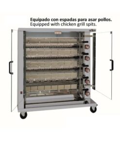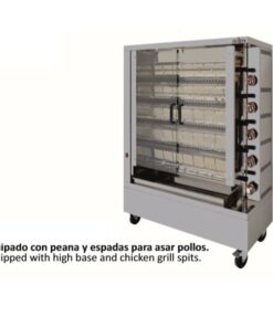 - Asador de pollos, preparado para equipar con espadas (no incluidas) para asar pollos y jaulas (no incluidas) para asar cualquier alimento.