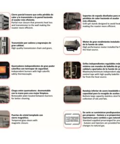 - 32-48 pollos; 56Kw; 8 quemadores.