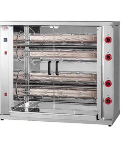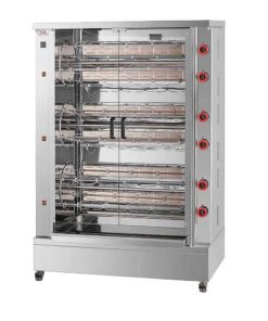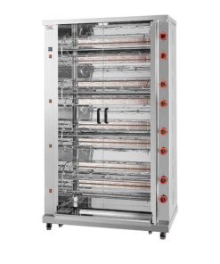 - Asadores multirotativo que permite la producción de hasta 96 pollos por hornada con un ahorro del 50% en gas.