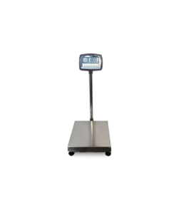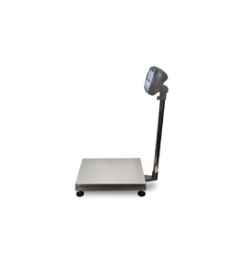 - Plataforma de estructura tubular en acero pintado, con plato de acero inoxidable y columna en acero inoxidable.