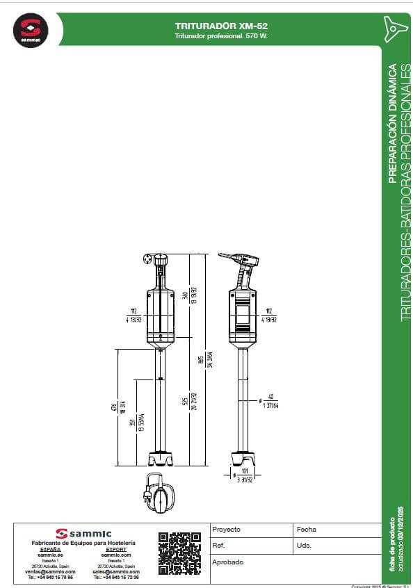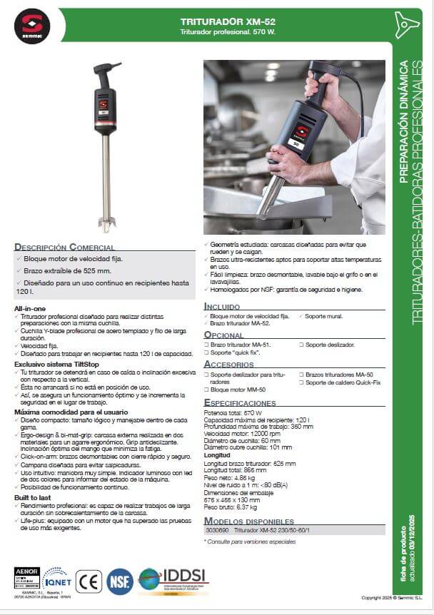 Brazo triturador modelo XM-52 para un uso continuo en recipientes hasta 120 l.