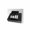 Caja registradora OLIVETTI ECR con factura simplificada; color negro y cajón pequeño.