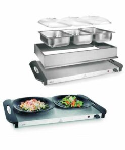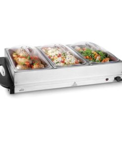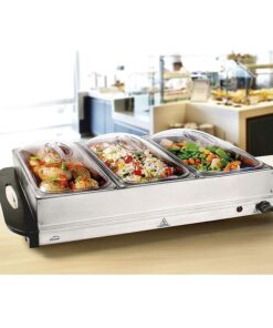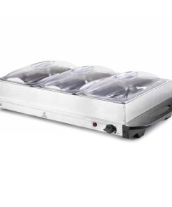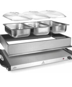 - Tres contenedores de calentamiento GN 1/3 de 2,5L con tapas transparentes de policarbonato, ideal para albergar gran variedad de alimentos.