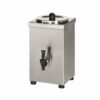 Calentador de leche con resistencia interna para calentar la masa de aluminio que contiene las cavidades (o huecos) y poder calentar el liquido contenido en el envase del tetrabrik cuando se deposita en el interior de la cavidad. Dispone de térmico regulador de temperatura que se desactiva cuando la cavidad tiene la temperatura programada y se activa cuando baja la temperatura programada. Lleva incluido las empuñaduras para colocarlas en los brick y verter el producto ya caliente, se trata de un sistema cómodo, sencillo e higiénico. Calentamiento por resistencia blindada equipado con regulador de temperatura. Fabricado en acero inoxidable con depósitos fabricados en aluminio.