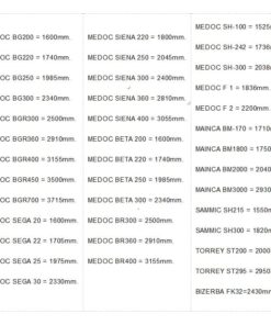 - Se adjunta listado con las medidas más habituales de las sierras, para las cortadoras más habituales.