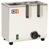 Hervidor de huevos con baño de agua de capacidad de 8L y espacio para 6 huevos. Construido totalmente en acero inoxidable. Termostato de trabajo y seguridad. Piloto testigo de funcionamiento. Interruptor on-off.