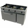 Modelo 6201G/1. Cocina a gas con horno GN1/1 de 4,5Kw + Grill de 1,7Kw + 2 fuegos de 8+8Kw. Total 22,2Kw. Medidas: 80 x 55 x 85 cm.