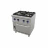 Cocina diseñada en acero inoxidable AISI-304 (18/10) con acabado scotch. Canto vivo lateral garantizando la máxima unión en el diseño de bloques completos de cocción. Encimera compuesta de fuegos abiertos con piloto de encendido, válvula de seguridad y termopar. Quemadores de alto rendimiento, con tapas de latón mecanizado y cuerpo en hierro fundido. Combinación de quemadores intercambiable entre si. Parrillas en hierro fundido con esmalte antiácido de dimensiones 390x293mm. Máxima protección de piloto oculto por un protector diseñado para resguardarlo. Bandejas inferiores recoge-grasas incorporadas. Hornos con guías y quemadores fabricados en acero inoxidable, con piloto de encendido, termopar y válvula termostática Minisit, de dimensiones 540x390x315mm (dotación de una parrilla). Tapa de registro lateral. Cerco y contrapuerta fabricados en acero inoxidable. Mandos ergonómicos de poliamida resistentes al calor y posiciones de piloto máximo y mínimo. Patas regulables en altura. Remates de chimenea en acero inoxidable. Encimeras de 1mm de espesor.