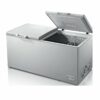 Congelador horizontal con tapa, cuba exterior e interior en chapa de acero plastificada blanca atóxica y con tratamiento anticorrosión. Diseño elegante con esquinas redondeadas y cristal curvo. Marco de puertas en ABS gris inyectado. Evaporador sobredimensionado. Optimización de la distribución interior mediante cestas (no incluidas). Termostato regulable y termómetro analógico. Interruptor de congelación rápida. Piloto encendido y sobreelevación de temperatura. Desagüe en la cuba para facilitar su limpieza. Puertas correderas con cerradura. Ruedas multidireccionales. Gas refrigerante R600A.