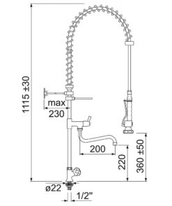 Ducha para vajilla con grifo vertical montura cierre goma con caño orientable.