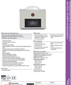 - Modelo equipado con bomba Busch. Ofrece doble soldadura o doble cordón de sellado para garantizar la durabilidad del envasado.