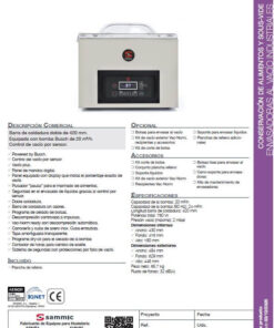 - Modelo equipado con bomba Busch. Ofrece doble soldadura o doble cordón de sellado para garantizar la durabilidad del envasado.