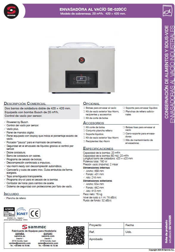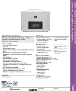 - Modelo equipado con bomba Busch. Ofrece doble soldadura o doble cordón de sellado para garantizar la durabilidad del envasado.