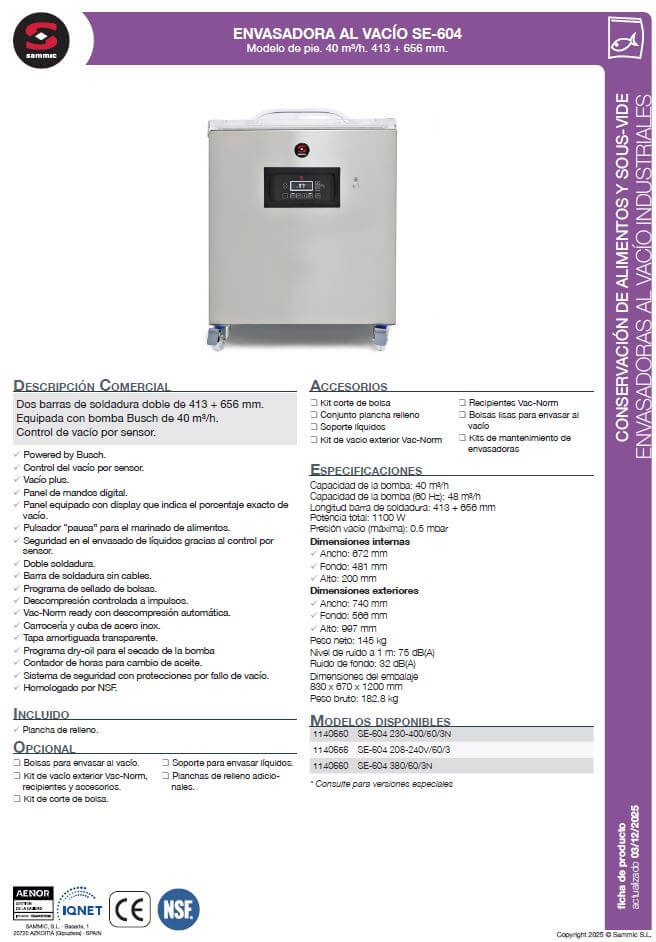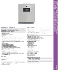 - Modelo equipado con bomba Busch. Ofrece doble soldadura o doble cordón de sellado para garantizar la durabilidad del envasado.