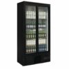 Modelo PEKIN GJ448. Expositor refrigerado; 2 puertas correderas; 490L; Temperatura 2/8ºC; 400W; 4+4 estantes. Medidas: 92 x 51.4 x 180 cm.