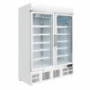 Modelo PEKIN FT-150F. Expositor sobremesa congelación; frío ventilado; 1 puerta; 3 estantes; 150L; Temperatura hasta -18ºC; 220V; 450W; Consumo día 1,0Kw/h. Medidas: 54.5 x 65 x 95.5 cm.