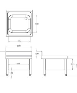 - Patas cuadradas de acero inoxidable de 40 x 40 mm para elevar la altura desde los 555 hasta los 605 mm.