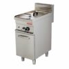 Freidora a gas con estructura construida en acero inoxidable. Paneles laterales, paneles de mandos, chimenea y cubierta de la cuba fabricados en acero inoxidable AISI-304. Cuba fabricada en acero inoxidable equipada con grifo de drenaje de aceite. Interior de la cuba con cantos redondeados. Tambor para recoger el aceite usado en acero inoxidable. Quemadores alta potencia, resistentes al choque térmico y mecánico, que incorporan encendido por piezoeléctrico. Válvula termostática para regulación de la temperatura. Termostato eléctrico de alta precisión y termostato de seguridad. Dotación de una cesta por cuba fabricada en acero niquelado. Se suministran predispuestas para gas natural y se proporcionan inyectores para cambios a gas propano – butano.