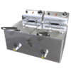 Freidora diseñada en acero inoxidable ISI 304 (18/10). Cuba interior embutida de AISI 304, sin ángulos y con las marcas de máx-mín. del nivel de aceite. Cabezal eléctrico extraíble para facilitar su limpieza. Termostato de trabajo regulable hasta 200ºC/20A. Resistencia blindada en acero inoxidable. Sistema de fijación de la cesta para escurrir el aceite en la cuba. Con grifo incorporado para evacuar el aceite. Sistema elevación MANUAL de la cesta para calentar el volumen de aceite necesario para freír. Cesta reforzada en malla y varilla en acero inoxidable AISI 304 (18/10), según normativa sanitaria. Filtro de residuos en el fondo de la cuba. Contenedor de vaciado extraíble en la parte inferior de la freidora. Patas regulables en altura y antideslizantes.