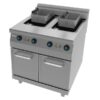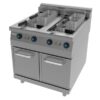 Cuba embutida de una pieza con cantos redondeados, perfectamente soldada a la superficie de trabajo. Zona fría en la parte inferior para acumular los residuos.