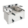 Freidora construida en Acero Inoxidable. Resistencias blindadas en acero inoxidable. Termostato de trabajo y seguridad. Grifo de vaciado de aceite. La cuba en acero inoxidable dispone en el fondo de zona fría que permite depositar los residuos para una fácil limpieza manteniendo el aceite siempre limpio. Cabezal extraíble con interruptor de desconexión.