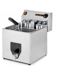 La cuba en acero inoxidable dispone en el fondo de zona fría que permite depositar los residuos para una fácil limpieza, manteniendo el aceite siempre limpio.