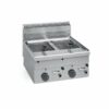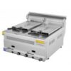 - Freidora a gas de sobremesa, con cuerpo de acero inoxidable.