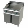Frytops con estructura construida en acero inoxidable. Puertas, paneles laterales y traseros, estantes, paneles de mandos y chimeneas fabricados en acero inoxidable AISI-304 18/10. Placa de cocción en acero pulido de 16 mm y peto antisalpicaduras de 100mm en acero inoxidable. Orificio de la placa de cocción para la eliminación rápida y conveniente de las grasas que resultan de cocción. Bandeja recogegrasas en acero inoxidable. Patas de acero inoxidable regulables en altura, fácilmente sustituibles por ruedas. Equipado con un quemador tubular de alto rendimiento fabricado en acero inoxidable para una distribución uniforme del calor, válvula de seguridad y piloto. 4 filas de llamas por quemador. Sistema de encendido por piezoeléctrico. De serie se suministran predispuestas para gas propano-butano y se proporcionan inyectores para cambios a gas natural.