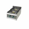Frytop a gas con placa de acero púlido de 16mm con peto antisalpicaduras de 100mm en acero inoxidable AISI-304. Quemador tubular en acero inoxidable para una distribución uniforme del calor, con válvula de seguridad y piloto. Encendido por piezoeléctrico. Tres filas de llama por quemador. Orificio recogegrasas.
