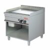Modelo GG911G Línea Estambul. Fry tops a gas con mueble; 1 válvula gas; placa acanalada de 15mm con baño de cromo duro; 7,5Kw. Medidas: 42.5 x 90 x 90 cm.