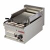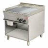 Modelo GG921G Línea Estambul. Fry tops a gas con mueble; 2 válvulas gas; placa acanalada de 15mm con baño de cromo duro; 15Kw. Medidas: 85 x 90 x 90 cm.