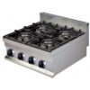 Frytop a gas con estructura y carrocería en acero inoxidable. Paneles laterales, paneles de mandos y chimeneas en acero inoxidable. Placa de acero de 16mm con baño de cromo duro con peto antisalpicaduras de 100mm en acero inoxidable. Quemador tubular para una distribución uniforme del calor, con válvula de seguridad y termopar. Sin válvula electrostática. Encendido por piezoeléctrico. Orificio recogegrasas. Bandeja recogegrasas en acero inoxidable. De serie se suministran predispuestas para gas natural y se proporcionan inyectores para cambios a propano-butano.