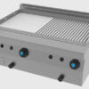 - Placa de asar de 15 mm de espesor. Peto de 100 mm de altura y 3 mm de espesor soldado por la parte superior evitando de este modo la acumulación y filtrado de grasas entre placa y petos. Fabricada en acero con baño de cromo duro de 50 micras.