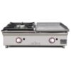 Frytop a gas fabricado en acero inoxidable de alta calidad con diseño elegante y construcción robusta. Dotada de quemadores de gas de gran eficiencia y válvulas de gas de alta calidad que proporcionan una gran potencia y seguridad. La válvula de gas dispone de un control de llama alta/baja y dispositivo de seguridad anti fallo de llama. Sistema de encendido automático por piezoeléctrico, cómodo y duradero. Cajón recogegrasas en acero inoxidable encastrado en el mueble. Certificado CE. Se suministran predispuestas para gas propano-butano y se proporcionan inyectores para cambios a gas natural. Placa de asar de 16mm de espesor con baño de cromo duro de 50 micras con peto trasero y lateral en acero inoxidable.