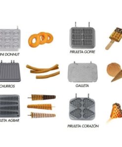 - Placas de cocción intercambiables. Se venden a parte, ya que la gofrera trae 1 ud.