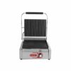 Grill eléctrico con estructura en acero inoxidable. Termostato regulable hasta 250ºC. Placas superiores e inferiores acanaladas.