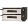 Horno diseñado en acero inoxidable y bastidor en chapa barnizada. Temperatura máxima de 500 °C. Panel de mandos electromecánico externo en lateral derecho. Puerta con cristal para visualización con apertura abatible. Superficie de cocción con material refractario de alta calidad. Aislamiento de lana de roca de alta densidad. Resistencias acorazadas. Regulación de temperatura suelo/techo independiente. Equipado con termómetro y luz interior.