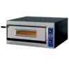 Horno diseñado en acero inoxidable y bastidor en chapa barnizada. Temperatura máxima de 500 °C. Panel de mandos electromecánico externo en lateral derecho. Puerta con cristal para visualización con apertura abatible. Superficie de cocción con material refractario de alta calidad. Aislamiento de lana de roca de alta densidad. Resistencias acorazadas. Regulación de temperatura suelo/techo independiente. Equipado con termómetro y luz interior.