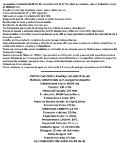 - Lavavasos Adler NL 40 con chasis fabricado en acero inoxidable AISI 304 18/8.