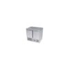 Mesa de preparación con puertas reversibles con dispositivo automático de cierre y fijación de apertura, evaporación automática del agua del descarche y control eléctrico y digital de la temperatura y del descarche.