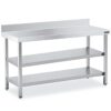 - Las mesas con puertas incluyen: plafones laterales, trasera y estante intermedio de acero inoxidable.
