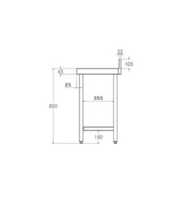 - Patas cuadradas de acero inoxidable de 40 x 40 mm para elevar la altura desde los 850 hasta los 900 mm.