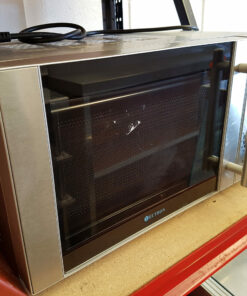 - Su plato giratorio permite realizar una cocción uniforme a todo el plato de comida.