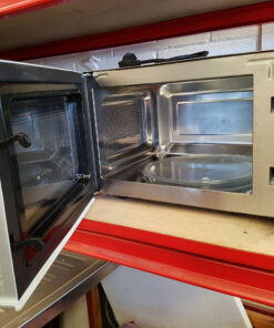 - Las dimensiones exteriores incluyen todos los elementos externos: tirador frontal y espacio de seguridad que debe quedar detrás del microondas.