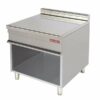 Mueble neutro con estructura construida en acero inoxidable. Plano de trabajo, paneles laterales y traseros y chimeneas fabricados en acero inoxidable para permitir una mayor durabilidad, robustez, fiabilidad y fácil limpieza. Patas en acero inoxidable regulables en altura.