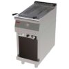 - Para las cocciones, parrilla reclinable con tres niveles de intensidad de calor. Facilita la conducción de las grasas a un cajón frontal evitando que se quemen y generen humos.