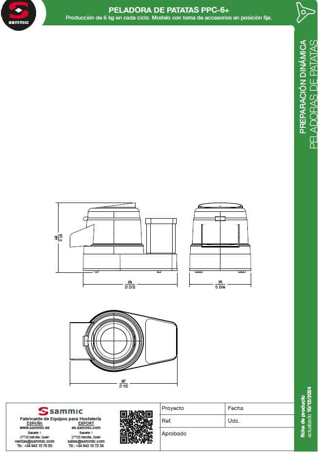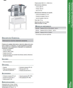 - Equipamiento opcional: soportes y filtros anti-espuma para las peladuras.