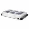 Tres contenedores de calentamiento GN 1/3 de 2,5 L con tapas transparentes de policarbonato, ideales para albergar una gran variedad de alimentos.