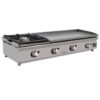 Plancha con diseño en acero inoxidable acabado alto brillo. Certificado CE. Placa de asar de 6 mm de espesor fabricada en acero laminado con protección antioxidación y peto de 36mm de altura. Placa de cocción totalmente extraíble que facilita su transporte, mantenimiento y limpieza. Mandos de baquelita cromado de gran calidad con marcador máximo – mínimo. Grasera frontal de gran capacidad y fácilmente extraíble fabricada totalmente en acero inoxidable. Encendido automático por piezoeléctrico (1 por válvula de gas). Pies altos regulables de gran robustez. Fogón con termopar de gran poder calorífico de 6kw. Parrilla de hierro de fundición de gran dureza totalmente desmontable. Quemador de diseño propio con salida de llama por todo su perímetro asegurando un reparto uniforme de calor por toda la placa. Sin «zonas frías». Gran poder calorífico con termopar de seguridad. Toma de gas por la parte trasera. De serie se suministran predispuestas para gas propano – butano y se proporcionan inyectores para cambios a gas natural.